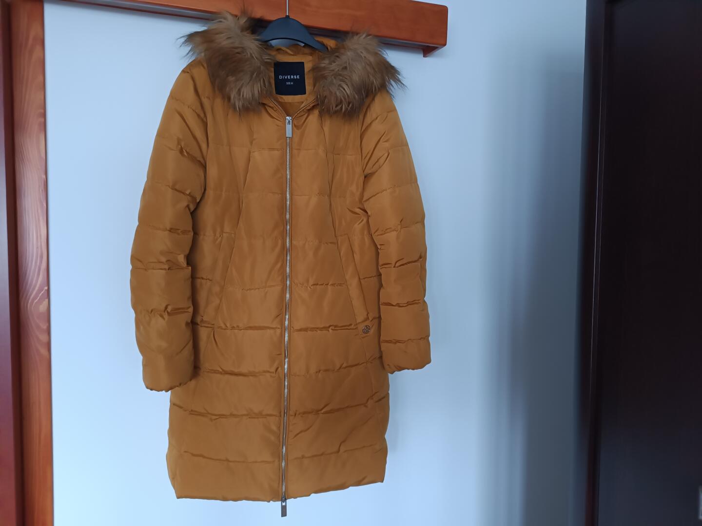 Sprzedam płaszcz zimowy damski z kapturem DIVERSE rozmiar M. Kolor miodowy. Stan idealny.